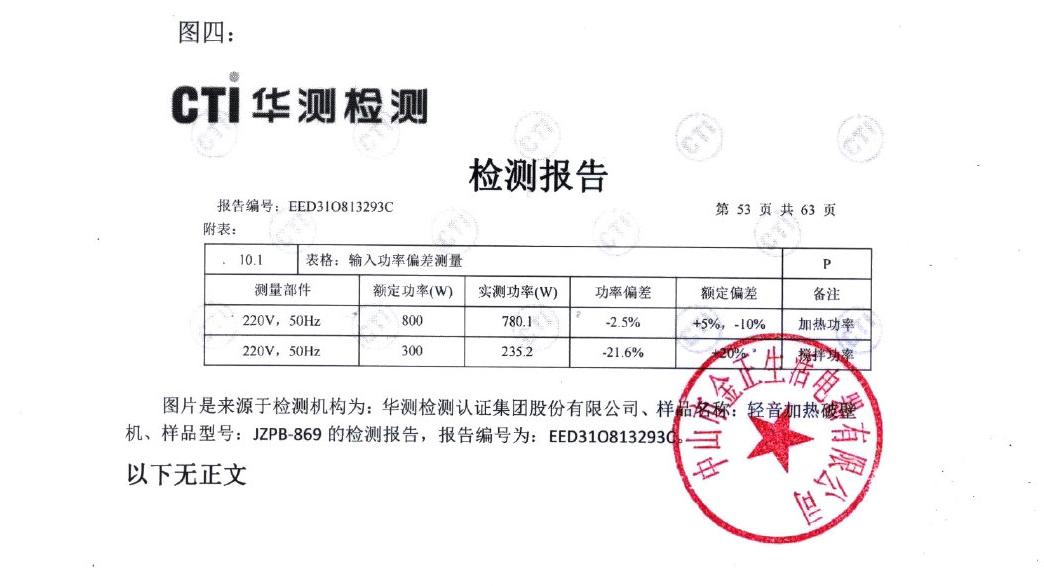 王海认为,恰恰是金正生活电器声明中所附的那份《检测报告》能够证明这款破壁机“以次充好”。
