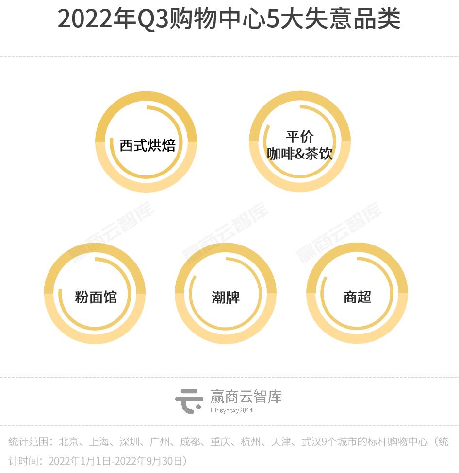 据赢商大数据监测,2022年第3季度,9个重点城市约200个标杆购物中心,新开店近4000家,新关店约5000家,开关店比0.77,多个业态收缩明显。 (点击查看👉2022第三季度购物中心各业态品牌开关店报告)