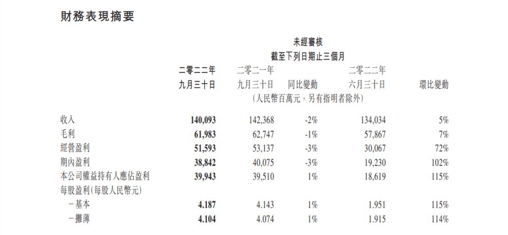 利润方面,腾讯第二季度实现毛利润620亿元,相比去年同期下滑1%;经营利润和净利润均下滑3%。但与今年上半年盈利腰斩相比,第三季度的盈利表现改善明显,毛利润环比增长7%,经营利润增长72%,净利润增长102%。