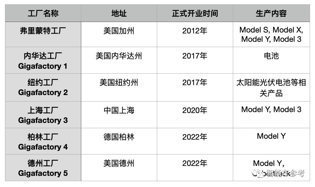 其中用来生产制造整车的,主要是弗里蒙特工厂、上海工厂、柏林工厂和德州工厂4家。