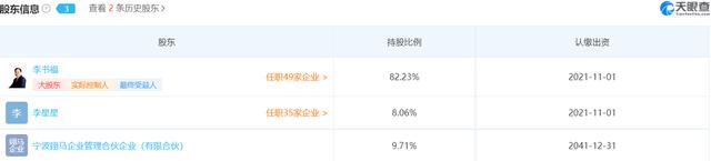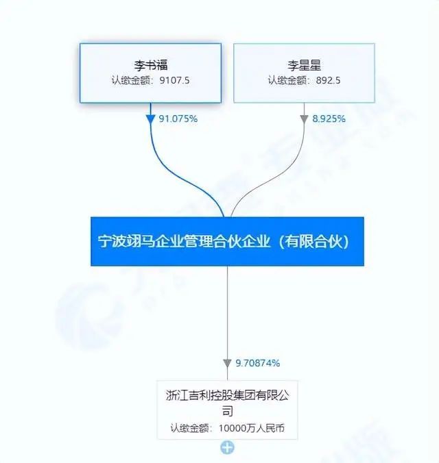 据天眼查显示,在股权分配上,吉利控股由父子二人共同占有,其中持股比例9.71%的宁波翊马企业管理合伙企业(有限合伙)也是有李书福和李星星共同持股。