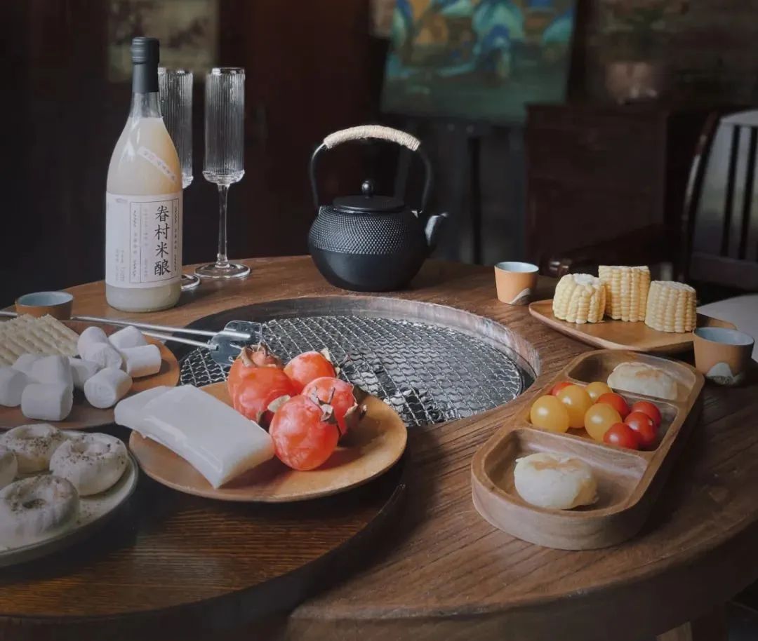 同时,烤的小食也更加多元, 比如柿子、棉花糖、年糕、栗子、红枣、玉米等。有些茶馆甚至会提供茶点、甜品等。