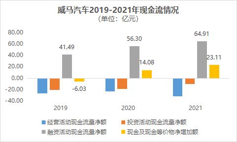 不难看出,至少2022年前投资界对于威马是绝对看好的,企业的现金流也得到了保障。2019-2021三年间,尽管威马汽车的“造血能力”不够强,但是通过“输血”,不仅弥补了自身的经营损失,还获得了更充裕的现金流。