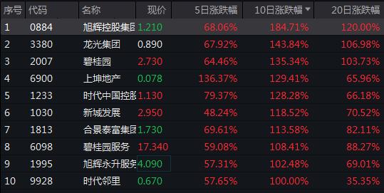 旭辉股价上涨接近4倍,近10日涨超180%,碧桂园、龙湖等头部房企股价涨势强劲,如碧桂园,11月1日至14日的10个交易日间,公司共收获9根阳线,区间涨幅为222.77%。特别是在11月11日、14日,两日涨幅分别高达34.94%和45.54%。