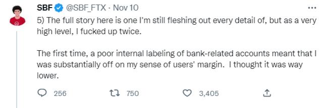 从11月10日开始,SBF就不断在推特上“狂刷存在感”,他先是表示:“我很抱歉——这是最重要的。我搞砸了,我应该做得更好。”