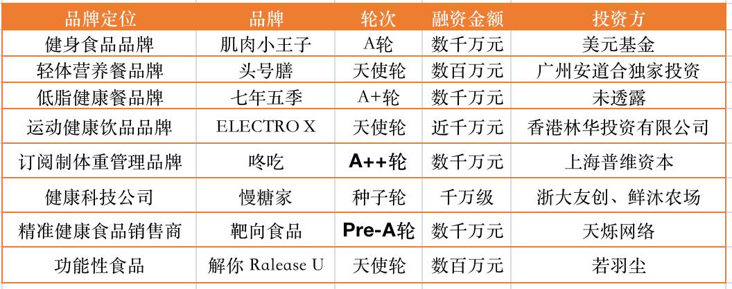 在2022年1月至10月的融资情况中,专门针对儿童这一特殊人群的食品饮料也获得了不少融资。如儿童健康鲜食品牌「唯鲜良品」、儿童健康餐食品牌「怡芽」等等。值得注意的是,对于健身瘦身、运动人群的食品饮料企业,也获得了不少的融资。如健身食品品牌「肌肉小王子」、订阅制体重管理品牌「咚吃」都获得了数千万级别的A轮融资。