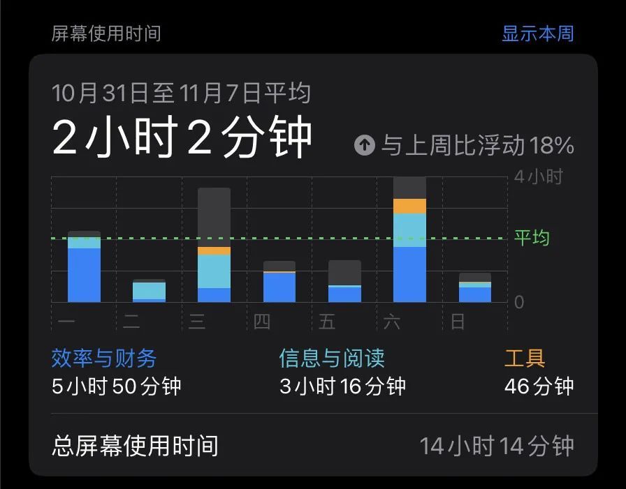 至于阅读时间管理的功能,我直接使用系统的屏幕使用时间进行。由于我只将 iPad 作为阅读器使用,所以其中的应用使用时间就可以直观反映出我的每日阅读时间变化,这比用专门的阅读软件计时要方便多了。