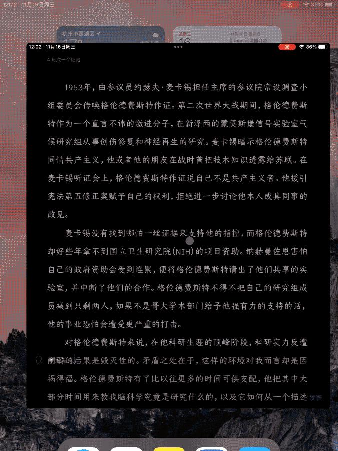 我使用微信阅读阅读一些较为轻松的兴趣书籍。微信阅读具备庞大的书库,并且能够方便地导入 epub 格式文档,更重要的是相比于原生的图书应用,我觉得它的阅读体验以及对手写笔的支持都要更好。通过设置桌面小组件,我可以一步进入正在阅读的书籍继续阅读。