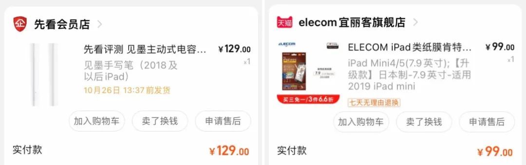 硬件部分:iPad mini 5(¥1450) + 第三方手写笔(¥129) + 类纸膜(¥99) + 保护壳(¥13) + 粘贴式笔夹(¥2.8)=¥1693.8