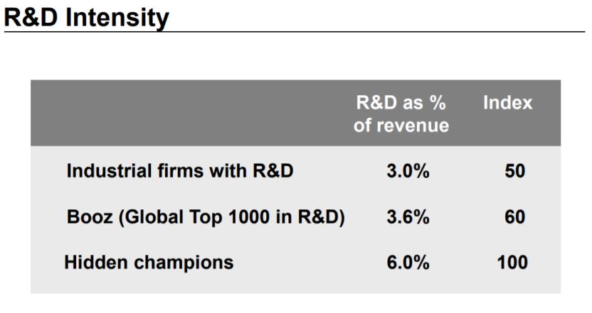 重视客户的需求,高度强调研发与产品竞争力,让隐形冠军们在各自市场里所处的市场地位和占据的优势。