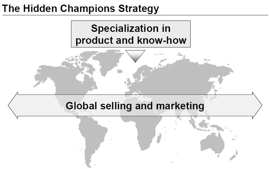 它们中的许多公司都在全球市场拥有超过50%的份额,有时甚至达到70%或90%——这是只有少数几家大型跨国企业才能企及的市场地位。