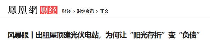 11月11日,凤凰网财经发布了一篇《出租屋顶建光伏电站,为何让“阳光存折”变“负债”》的报道,再次对光伏租赁的行业乱象进行曝光。