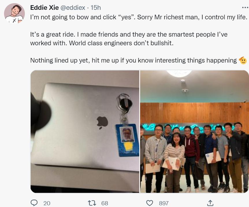 尽管现在硅谷各大公司都在裁员,就业市场并不好看,但是还是有不少人因为不愿意为马斯克工作,愤而离职。