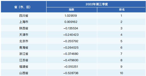 31省(区、市)2022年第三季度居民健康消费指数TOP10