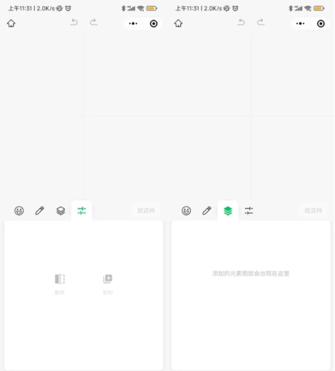 如果觉得简单素材叠加还不够“个性化”,你还可以点击画笔按钮,选择添加文本内容和涂鸦内容,例如自己对表情的文字描述或是自行绘制一些暂时还没有的表情素材。除此之外,还支持调整图层顺序即每个表情部位的叠放顺序,以及对表情的翻转或复制调整,总之自由度非常高。