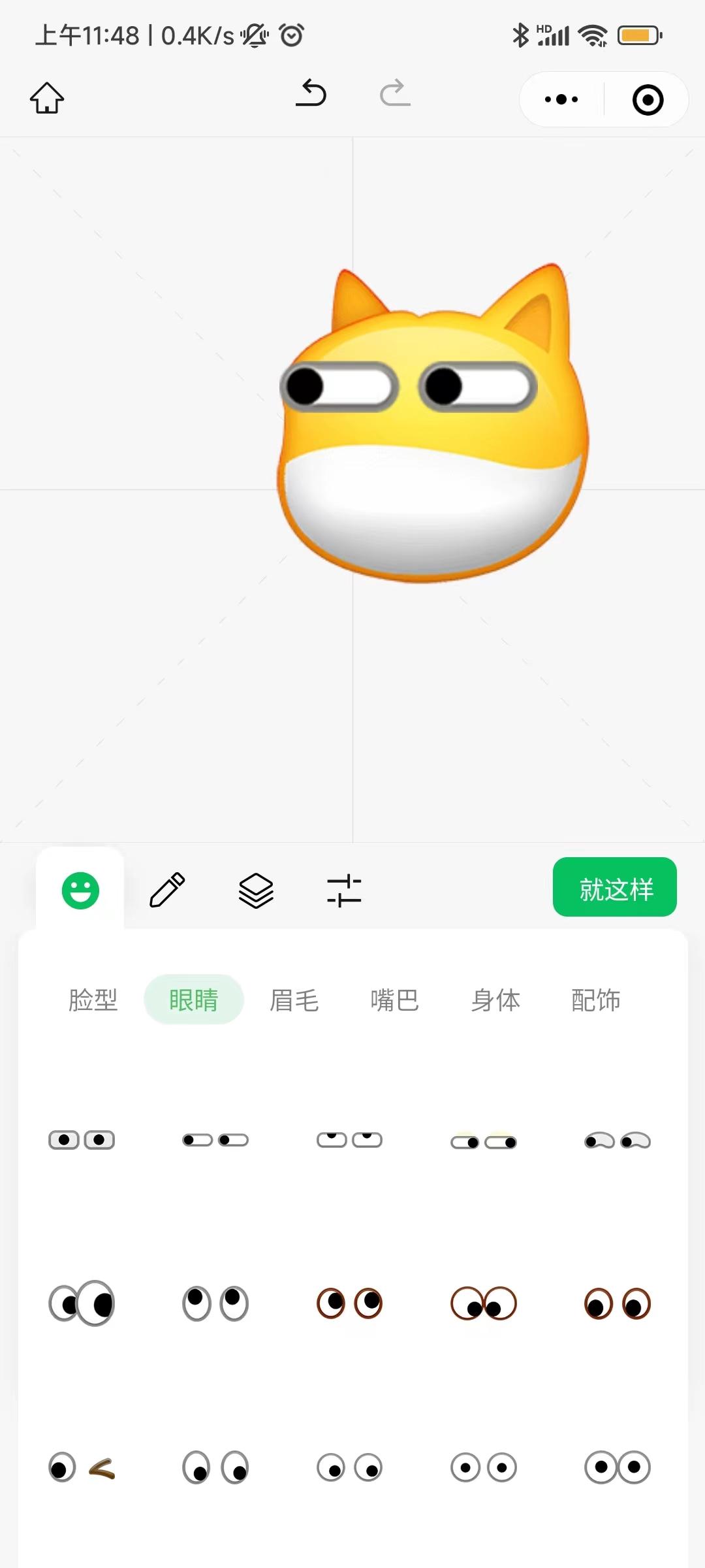 举个例子,如果我想制作一个“狗才摸鱼”的表情包,可以先挑一个狗头脸,然后加上戏谑的眼睛。