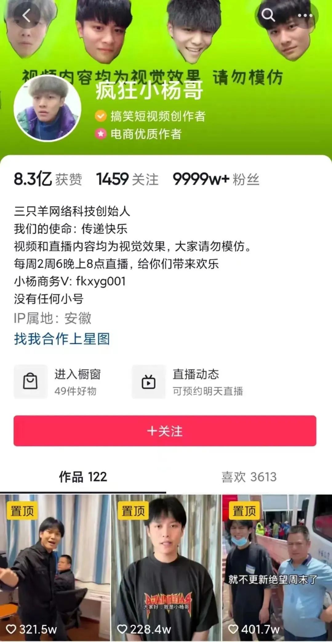 “疯狂小杨哥”抖音截图