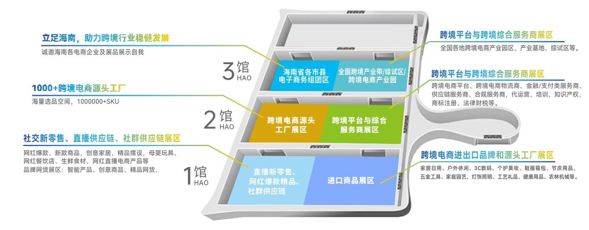 2022海南跨博会预计展出总面积37120㎡,将汇聚1000+源头工厂、30+跨境平台、200+跨境服务商、超50000人次专业买家参展。