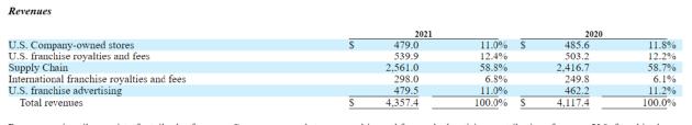达美乐比萨收入结构,来源:达美乐比萨2021年度报告