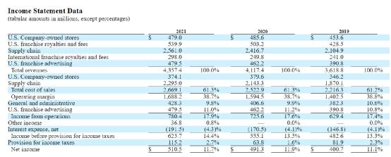 达美乐比萨历年盈利,来源:达美乐比萨2021年度报告