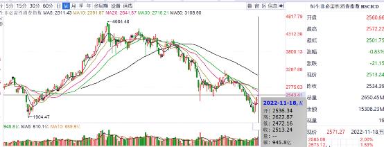 今年8月以来,恒生非必需性消费业指数持续走低,直至10月才开始出现回暖趋势。