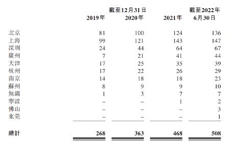 达势股份的餐厅数量分布,来源:达势股份招股书