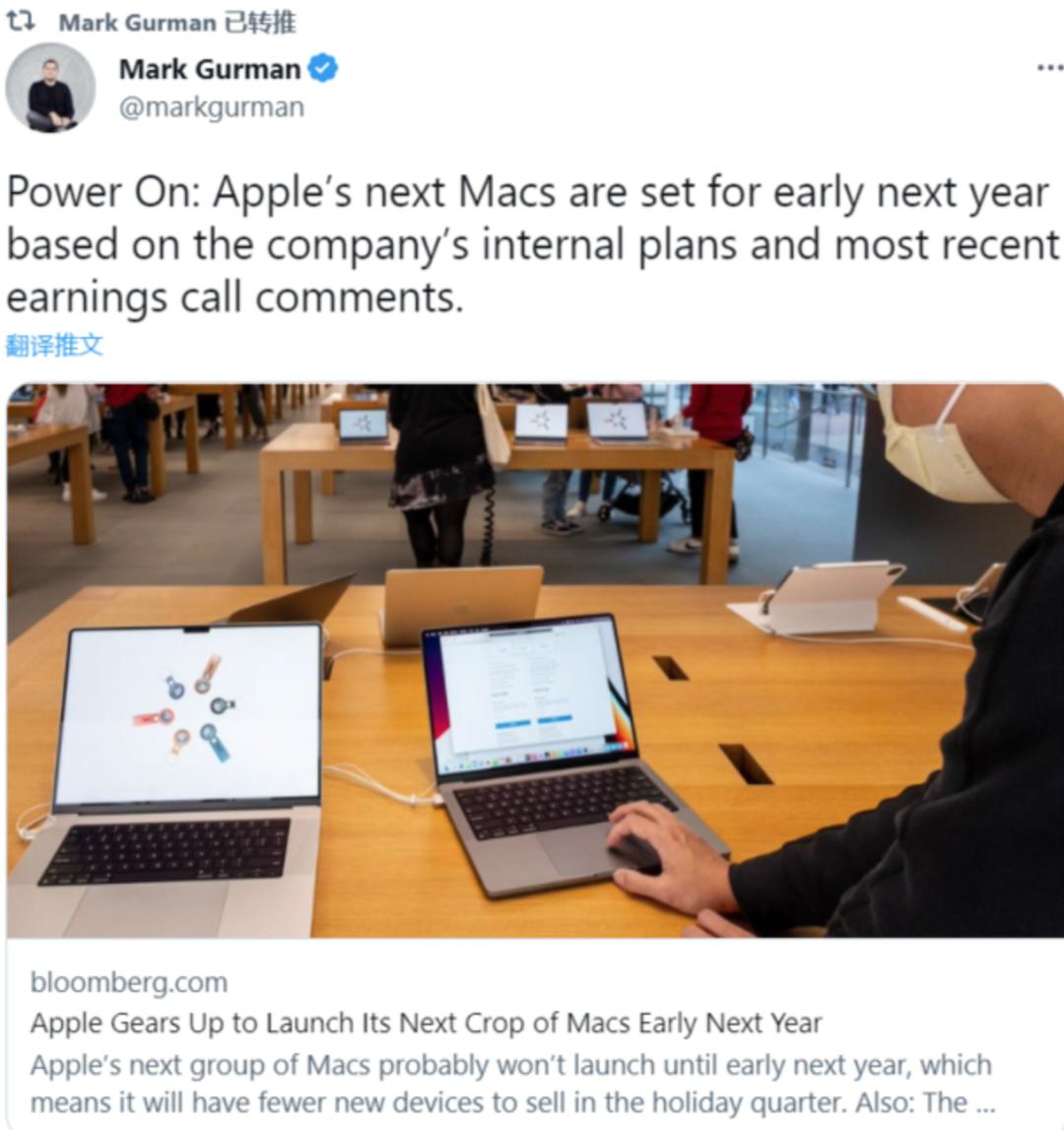 从外媒的爆料来看,苹果会在明年发布两款不同尺寸的MacBook Pro、Mac Mini以及iMac,虽说搭载M2芯片的MacBook Pro还热乎着,但其不但采用的是旧款模具,而且在各方面表现也没能跟MacBook Air拉开太多差距,更别说M2芯片相比旧款的MacBook Pro性能还要差上一大截,显得M2版MacBook Pro稍稍有些智商税。