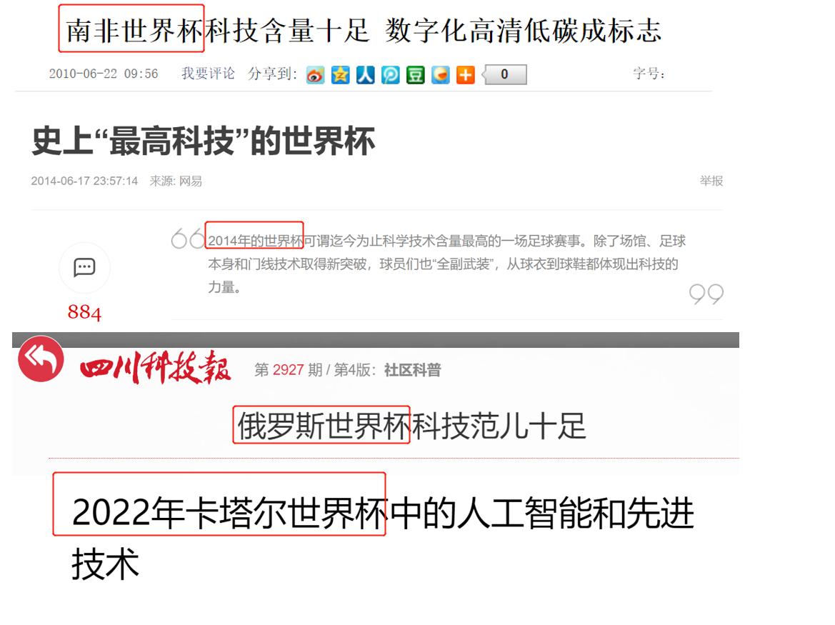 从2010年南非世界杯开始,科技成为了一个新的关键词,此后几届世界杯都在重点宣传自己的科技含量。