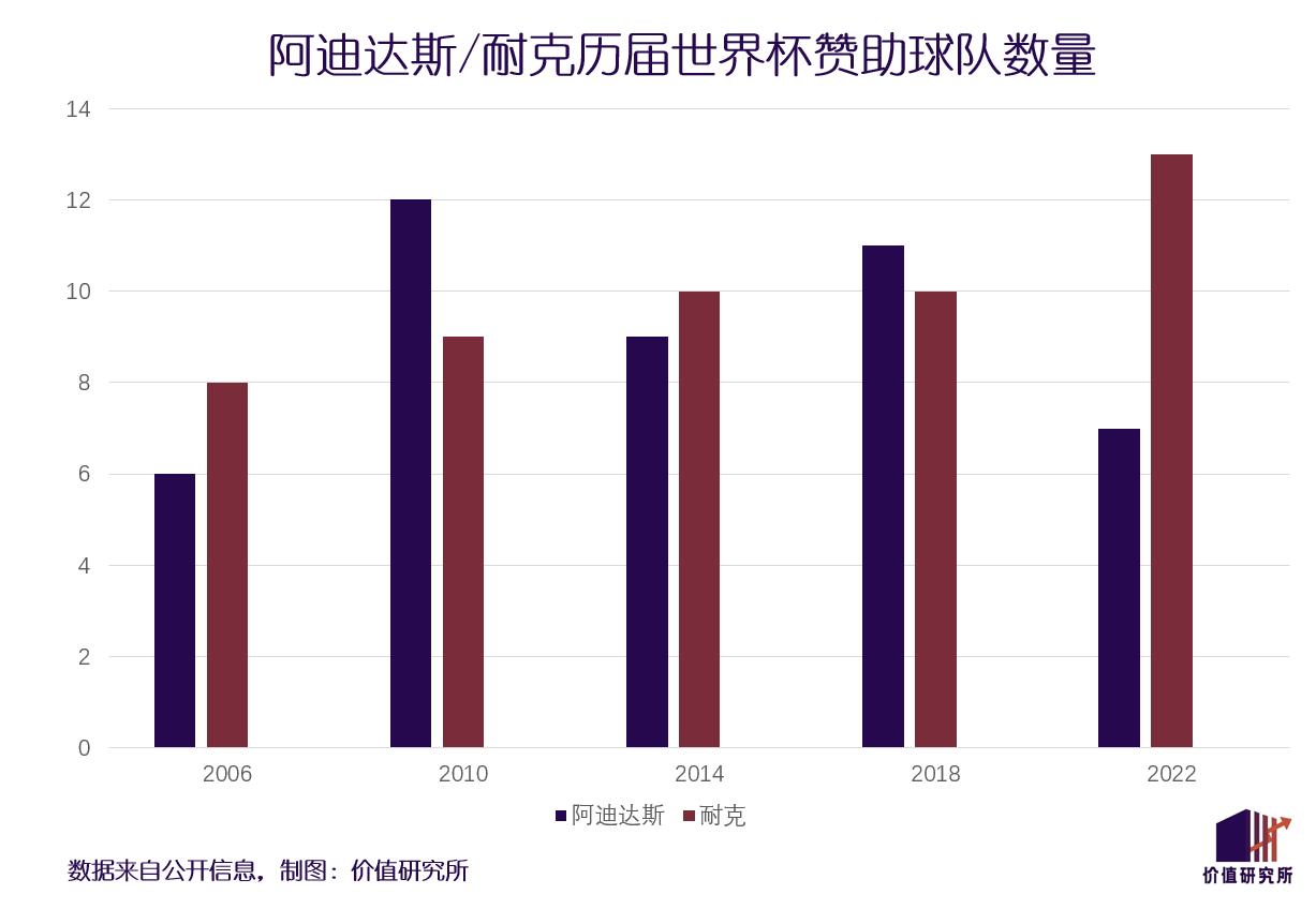 作过国际足联官方合作伙伴的阿迪达斯日薄西山,耐克的业绩也无法和巅峰期相提并论。