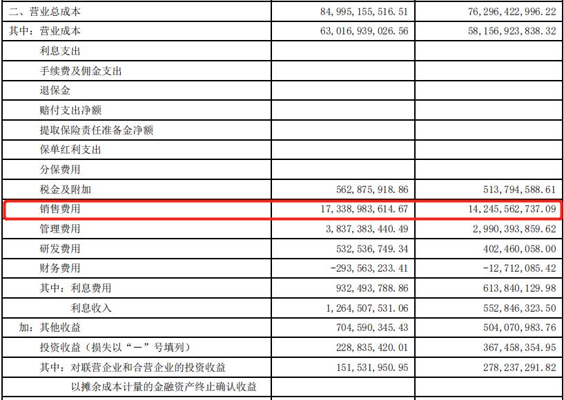 这一点在其Q3财报中也有所体现,财报显示,前三季度销售费用合计173 亿元,同比增长 22%,其中,具体到第三季度的销售费用为57亿元,同比增长29.45。