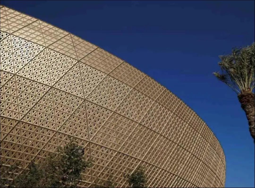 在外观设计上,球场看上去就像一个金色的碗,所以还有一个“大金碗”球场的别称。外观的设计灵感来自阿拉伯传统珐琅灯笼。