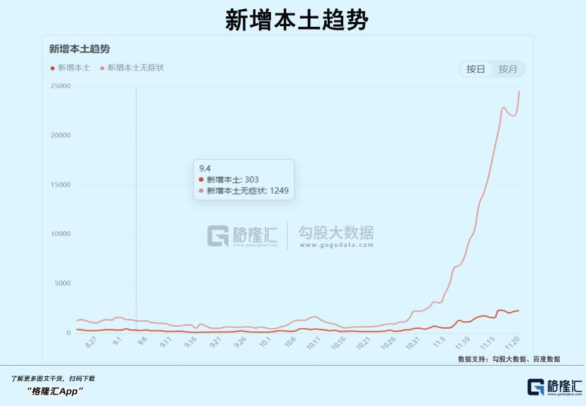 短期看,疫情对于白酒消费的影响与冲击是显而易见的。11月20日,全国新增本土确诊病例2277例,无症状感染者24547例。而10月31日,两者数据分别为498例、2221例。