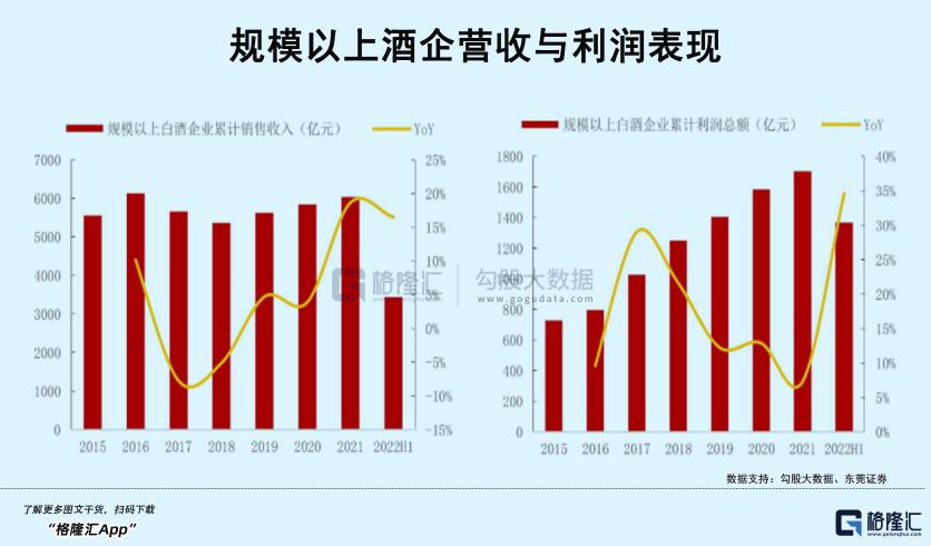 酒企业绩应该也会从明年开始遭遇一波不小的逆水。要知道,从2015年-2021年,规模以上白酒企业营收从5558.86亿元增加至6033亿元,年复合增速仅仅1.37%,而同期利润从727亿元增加至1702亿元,年复合增速15.23%。