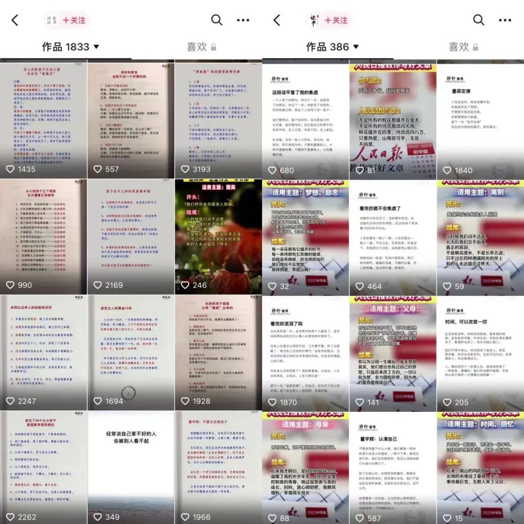 抖音上经常能够刷到各种分享图书语录的账号,有直接读的,有直接截图的,有摘抄经典名句的等。