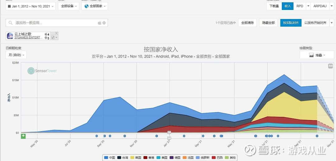 就这样一款在国内被骂惨的游戏,却悄无声息地靠韩国市场,狠狠赚了一笔。游戏在韩国刚上线,收入曲线就非常惊人。