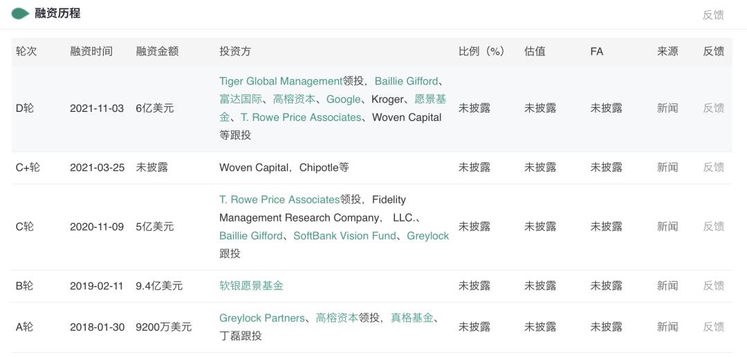 近年来,Nuro几乎保持着一年一轮的融资节奏,总计融资额超21亿美元。