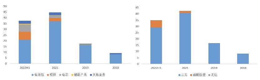 蜂巢能源在成立初期,主要为下游汽车客户提供最终产品电池包,随着各类车企客户的需求逐渐多元化,蜂巢能源也开始将中间环节的电芯、模组直接对外出售。