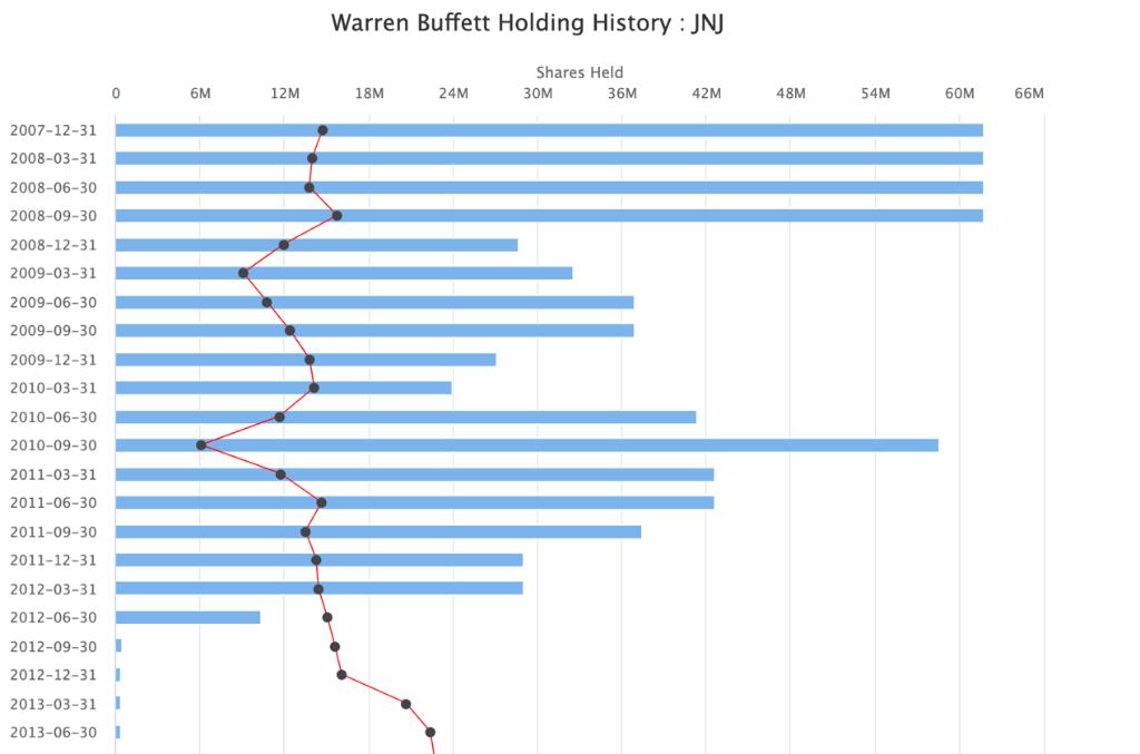 在2008年金融危机时,巴菲特曾短暂减持过几只长时间持有的股票,例如医疗保健集团强生、消费品巨头宝洁公司、美国合众银行(US Bancorp)。强生和保洁持仓在那之后再也没有回至原来水平,且2011年后重新被减持,如今巴菲特只拥有32.7万股强生股票和31.54万股宝洁股票。