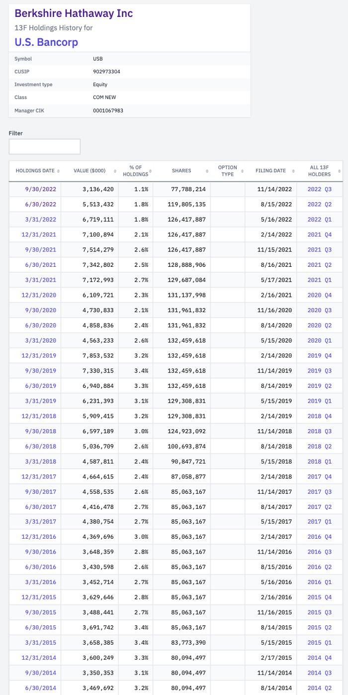但美国合众银行是个例外,在短时间的减持后继续被巴菲特加仓,持仓从2008年末的6755万股增至2019年的高达1.32亿股。