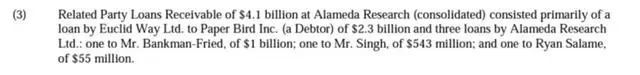 此外,根据Ray向美国联邦破产法院提交的文件显示,Alameda Research向FTX高管发放了三笔个人贷款,其中SBF借款10亿美元,分析指出这证实了两者之间的“后门关系”。