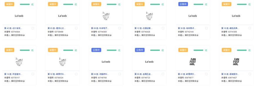 当然如果仅是如此,国际足联的商标布局也只称得上“快”而非“巧”,那么“巧”在何处呢?国际足联早在举办每一届世界杯前,就对重要的名称和标识,如其名称 “FIFA”、卡塔尔世界杯会徽、吉祥物 La’eeb 等进行了全类别注册保护。
