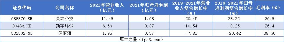 和同行业上市公司毛利率相比,公司近三年毛利率维持在41%左右,2021年毛利率为38.66%。同行业上市公司——美埃科技、新宇环保的毛利率分别是26.9%、26.4%。