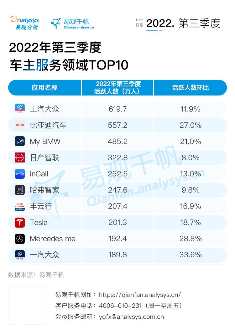 数智化、电动化、新能源化是汽车产业发展的重要驱动因素,在车主服务领域,智能用车、高品质服务、私域运营是趋势。上汽大众凭借庞大的车主基数和丰富的活动推广持续占据领先地位。宝马、奔驰通过为用户提供智能用车和智慧出行体验,实现活跃用户规模高速增长。比亚迪、特斯拉等新能源品牌的车主服务逐渐崛起,通过为车主提供智能、便利的用车体验,实现活跃用户规模的突破。