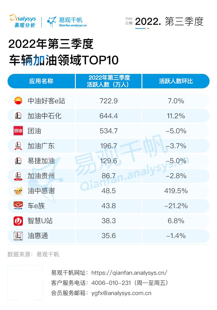 汽车加油领域正在实现数字化升级。其中,中石油、中石化凭借场站布局上的优势,维持互联网加油领域的领先位置,汽车加油TOP10平台中7成隶属两桶油。互联网背景的加油平台正在崛起,团油、车e族、智慧U站等众多互联网加油平台正在通过提供优质的服务和丰富的活动吸引用户使用。