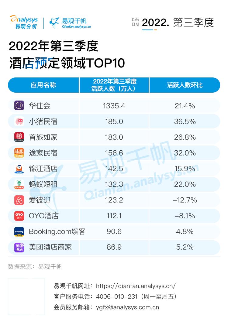由于暑期出游的火热带动酒店及民宿MAU在Q3上涨明显,华住会成为酒店中上涨最明显的APP,也是由于华住会积极拓展私域渠道预订所致。小猪民宿、途家民宿等民宿的上涨率也非常高,表明游客对民宿仍比较青睐。