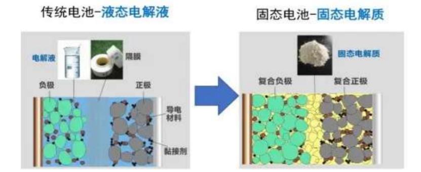 固态电池和传统液态电池对比,来源于锂电网