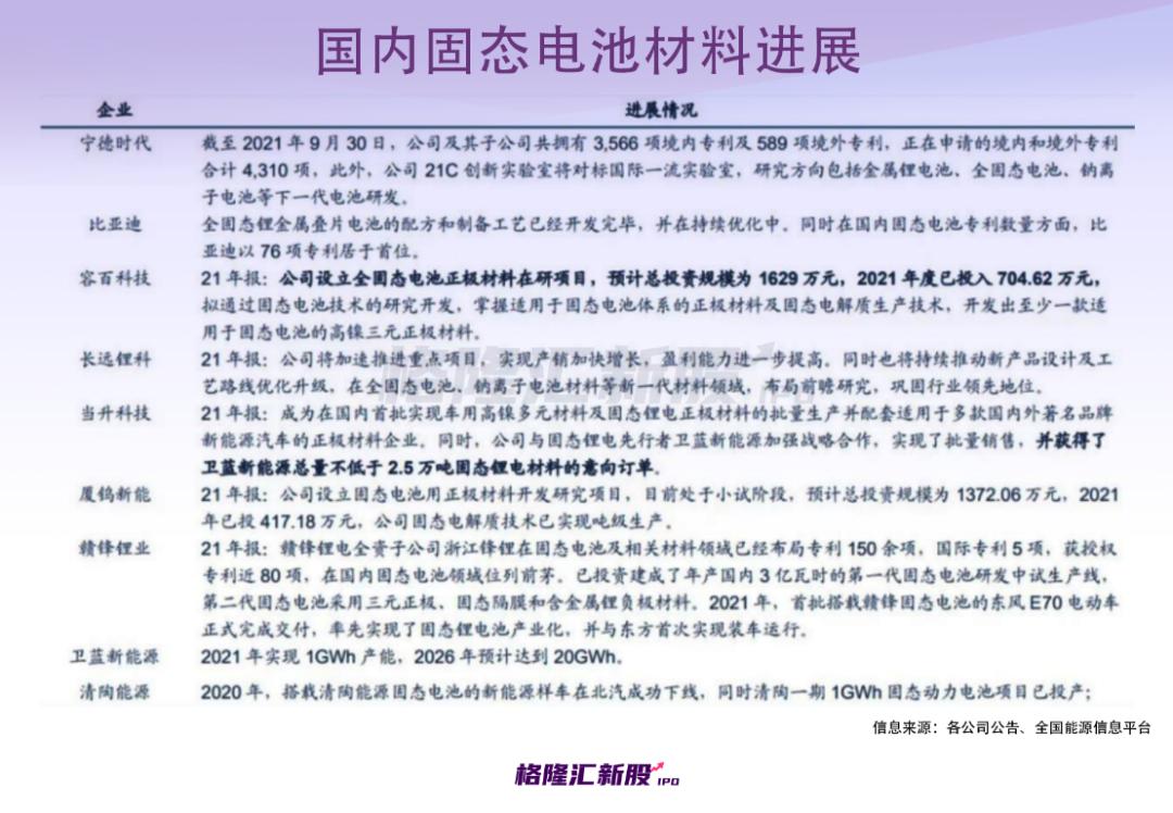 国内的企业也没闲着。做电池起家的比亚迪早已开始自研固态锂电池,相关专利技术也不少;上汽集团则与清陶能源合作研发固态动力电池,并计划于2023年率先在上汽自主品牌新款车型上实现落地应用。此外,宁德时代、赣锋锂业等公司也在大力研发固态电池技术。