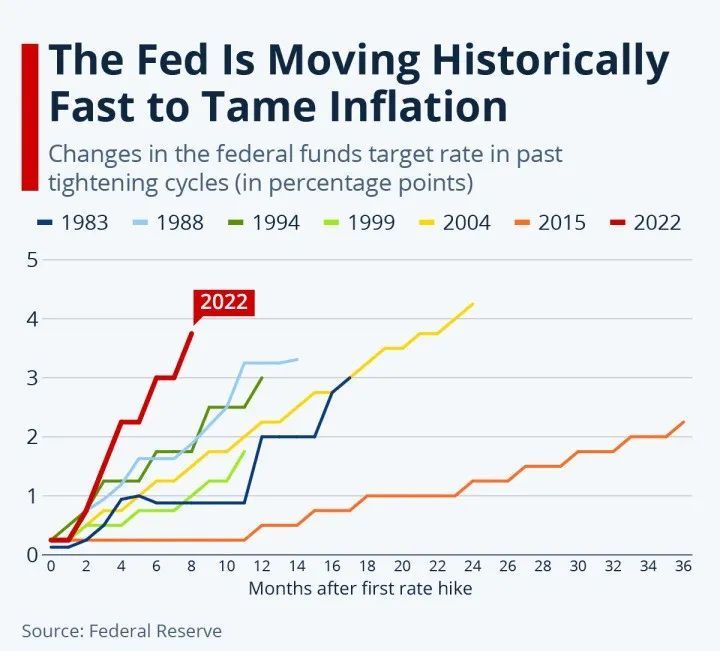 在11月初的会议上,美联储第四次加息75个基点至3.75%-4%,延续了1980年代以来最激进的紧缩政策。