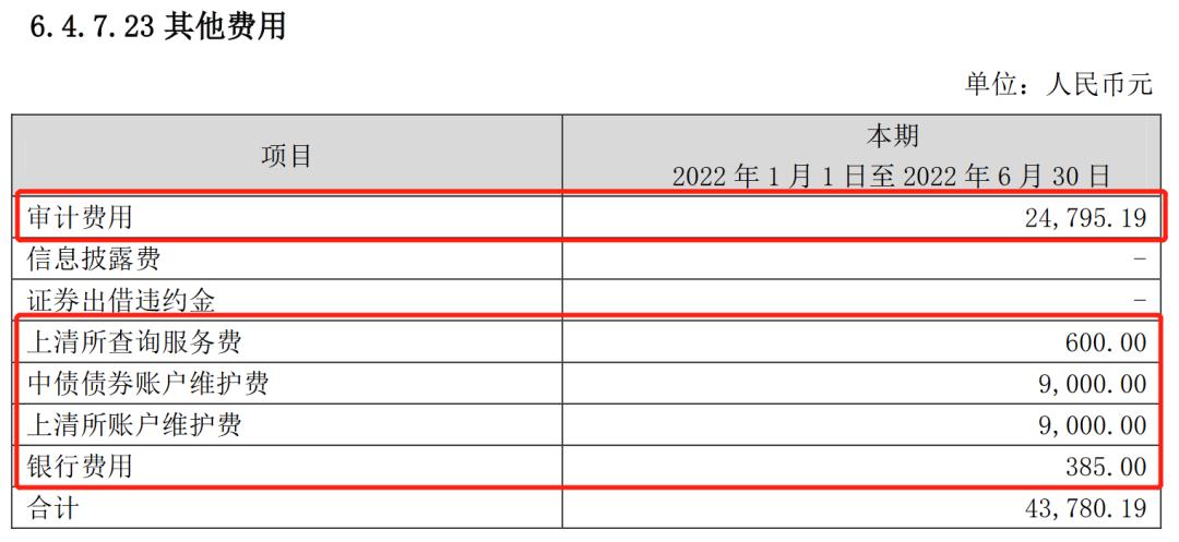 此外,在披露信息比较详细的中报中,还可以看到,除了管理费、银行托管费外,还有审计费用、上清所查询服务费、中债债券账户维护费等,合计4.38万元。这些费用都会按比例从基金每日净值中扣除。加之管理费,上半年费用达4.53万元。