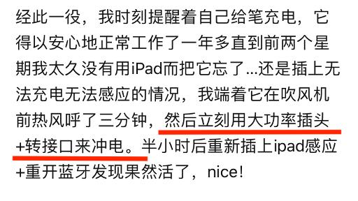 不过,要是Apple Pencil还在保修范围内,还是尽快送去修修吧。救不活的电池用生命告诉你要好好珍惜现有的电子产品,记得经常拿出来充充电。看到这里,赶紧去给饿死的电池送点吃的吧!